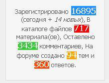 В данном материале Мы поможем Вам создать и установить информер с красивой и подробной статистикой зарегистрированных, а так же добавленных материалов и комментариев. Такая же статистика установлена и на нашем сайте!